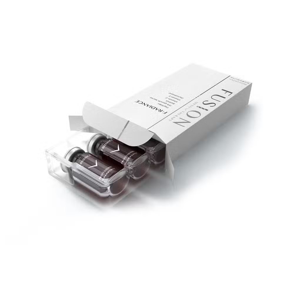 کوکتل ضد لک و روشن کننده F- RADIANCE محصول برند فیوژنساخت کشور اسپانیا به عنوان درمان نهایی برای لکه، روشن کردن پوست ،لکه های ناشی از افزایش سن میباشد. هر ویال فقط حاوی ترکیبات فعال خالص است و فاقد مواد نگه دارنده یا سایر مواد شیمیایی می باشد. روشن سازی پوست احتمالا دشوار است زیرا رنگ دانه سازی یک فرآیند مداوم است و این محصول باید بصورت مستمر استعمال شود. به منظور حصول نتایج موثر، ما از دو مکانیسم بهره می بریم: